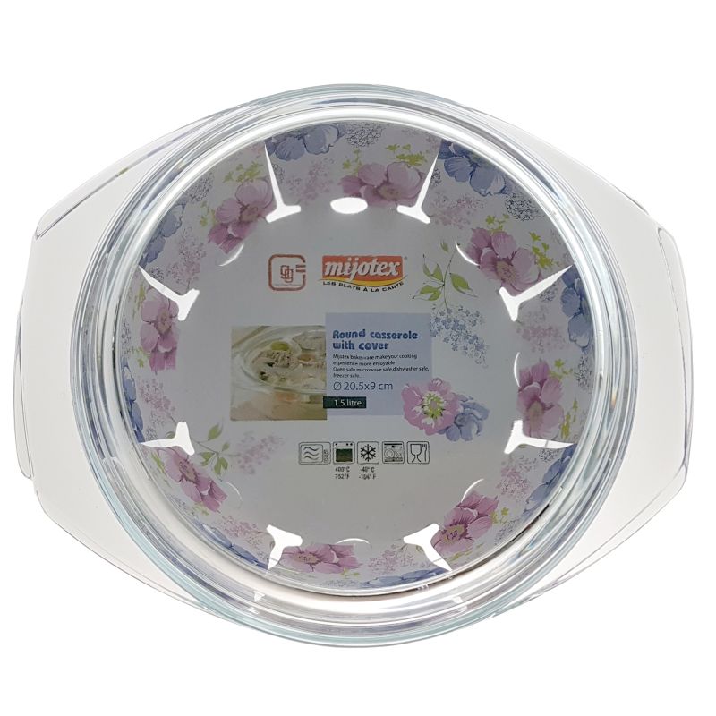 set 1 vas yena rotund cu capar MIJOTEX 1.5 l din sticla termorezistenta transparenta 1500 ml