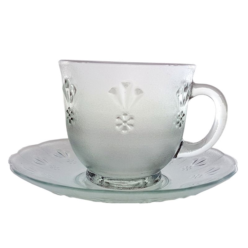 set 6 cesti KIG le 02 ab din sticla transparenta cu farfurie 200 mlset 6 cesti KIG le 02 ab din sticla transparenta cu farfurie 200 ml
