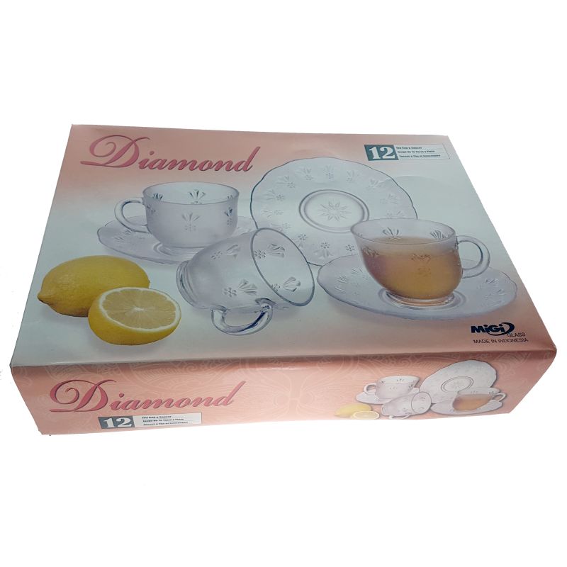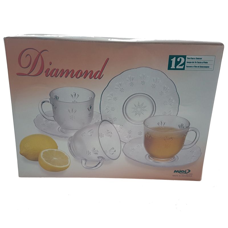 set 6 cesti MIGI ceai din sticla transparenta cu farfurie 200 ml